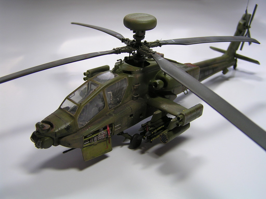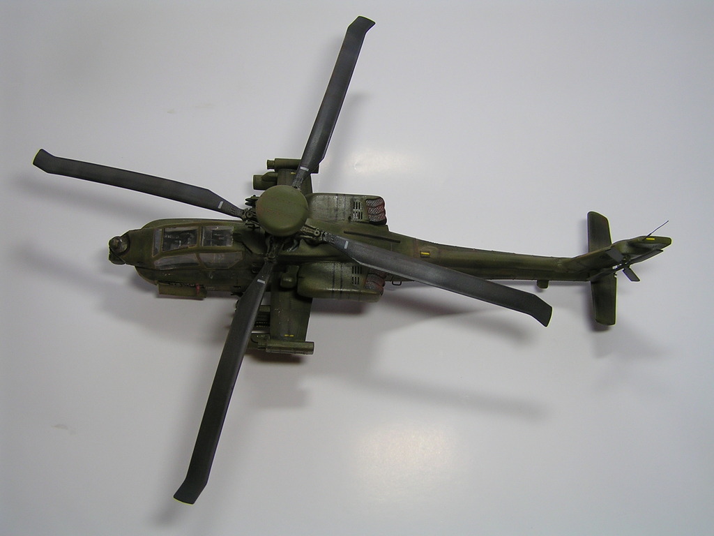 | Stručný popis stavby: | Tvar vrtulníku Apache je složitý a s množstvím výstupků. Nevyvarujeme se složitého tmelení a broušení. Vyřízl jsem do trupu otvor a vymodeloval prostor pro elektroniku, abych trochu oživil celkový dojem modelu . Celý vrtulník jsem nastříkal olivovou barvou. Chtěl jsem mít model hodně opotřebovaný. Prvním krokem bylo zapuštění olejů, které rozbily povrch a následně nastříkal více odstíny olivové barvy. Nakonec jsem model trochu zaprášil pigmenty. |
