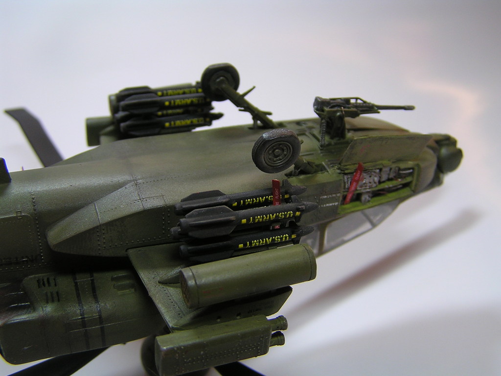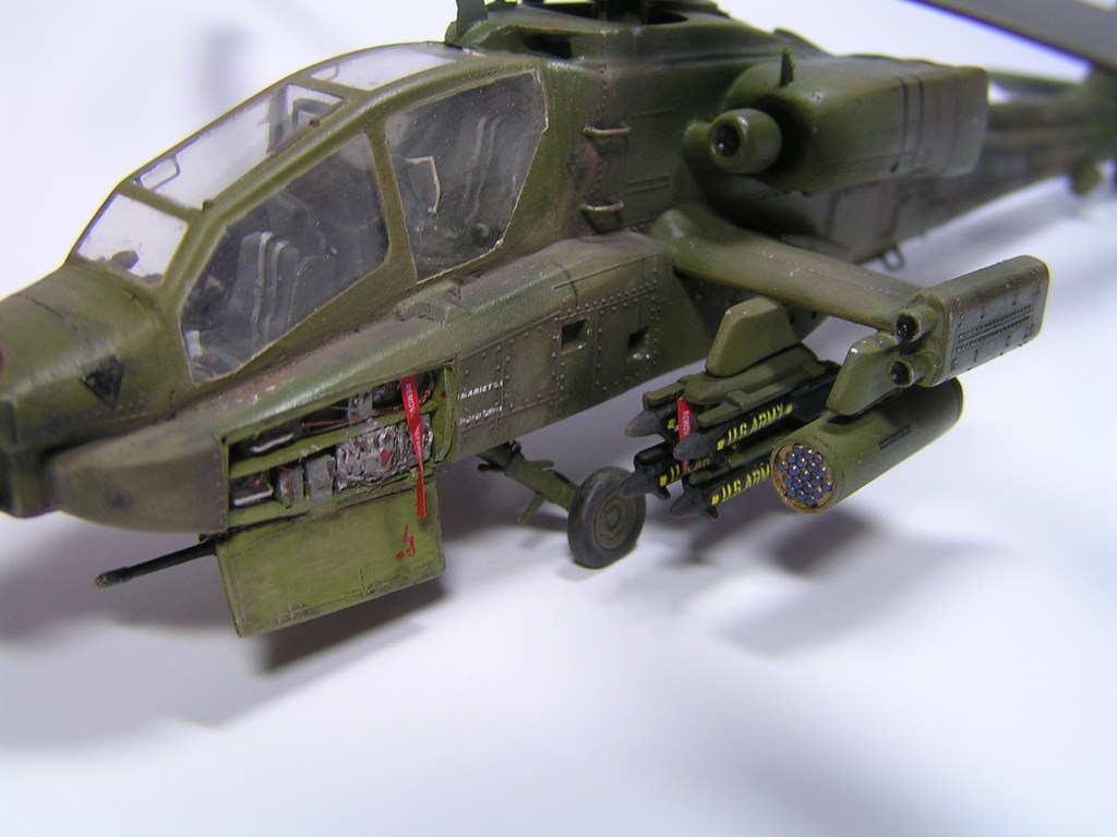 | Stručný popis stavebnice: | Stavebnice je poměrně kvalitně zpracována. Nýty vystupují na povrch a špatně se opravují při zbroušení. Kokpit má menší vadu, kterou je, že palubní desky jsou převzaté ze stavebnice Ah-64A Apache. U déčkové modernizované verze jsou naprosto odlišné. Podobná chyba je i u závěsného kulometu v přední části vrtulníku, který je v reálu trochu odlišný. |