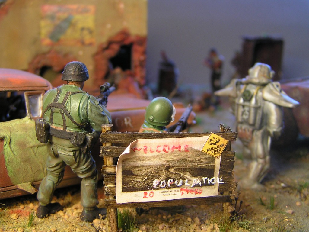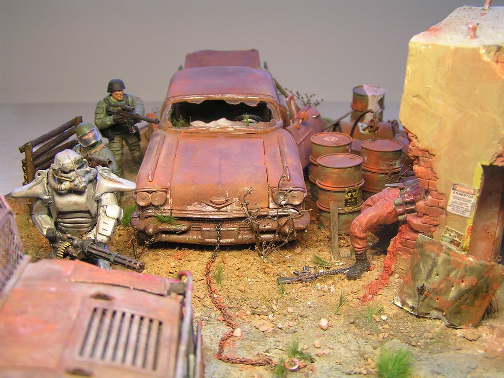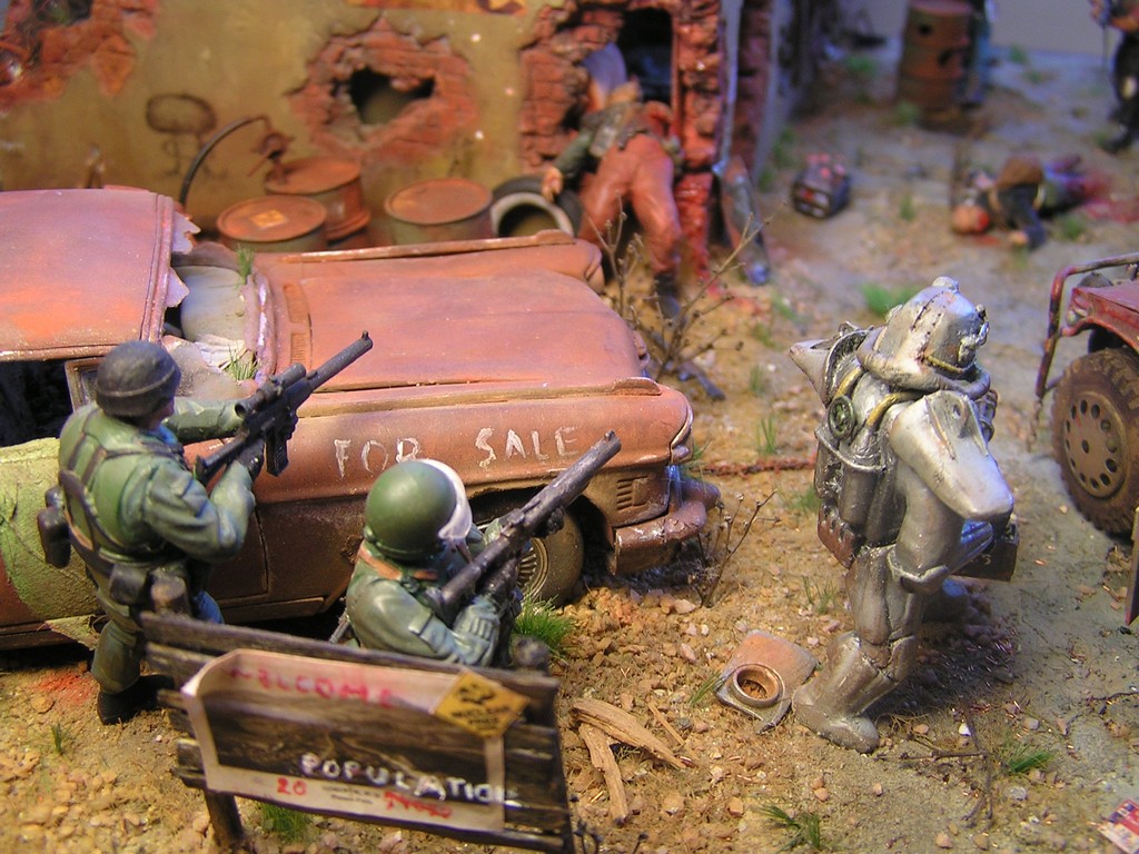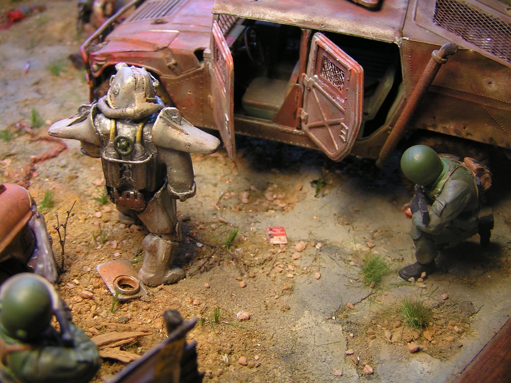 V dioramatu je zachycena scéna, která se odehrává u opuštěného polorozbořeného domu. Bandité přepadli tento úkryt, ve kterém se skrývá jeden obyvatel, který pochází z Vaultu 21. Do konfliktu se ale připlete skupina vojáků z Bratrstva oceli. Jeden člen skupiny (jejich velitel a paladin bratrstva) má oblečenou energo-zbroj a je vyzbrojen rotačním kulometem. Z počátku snadná kořist pro bandity se mění v nečekanou přestřelku a boj o holý život.