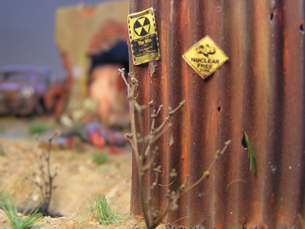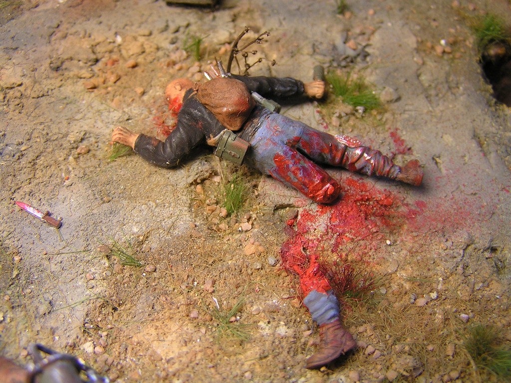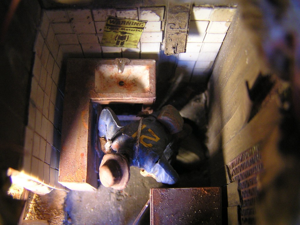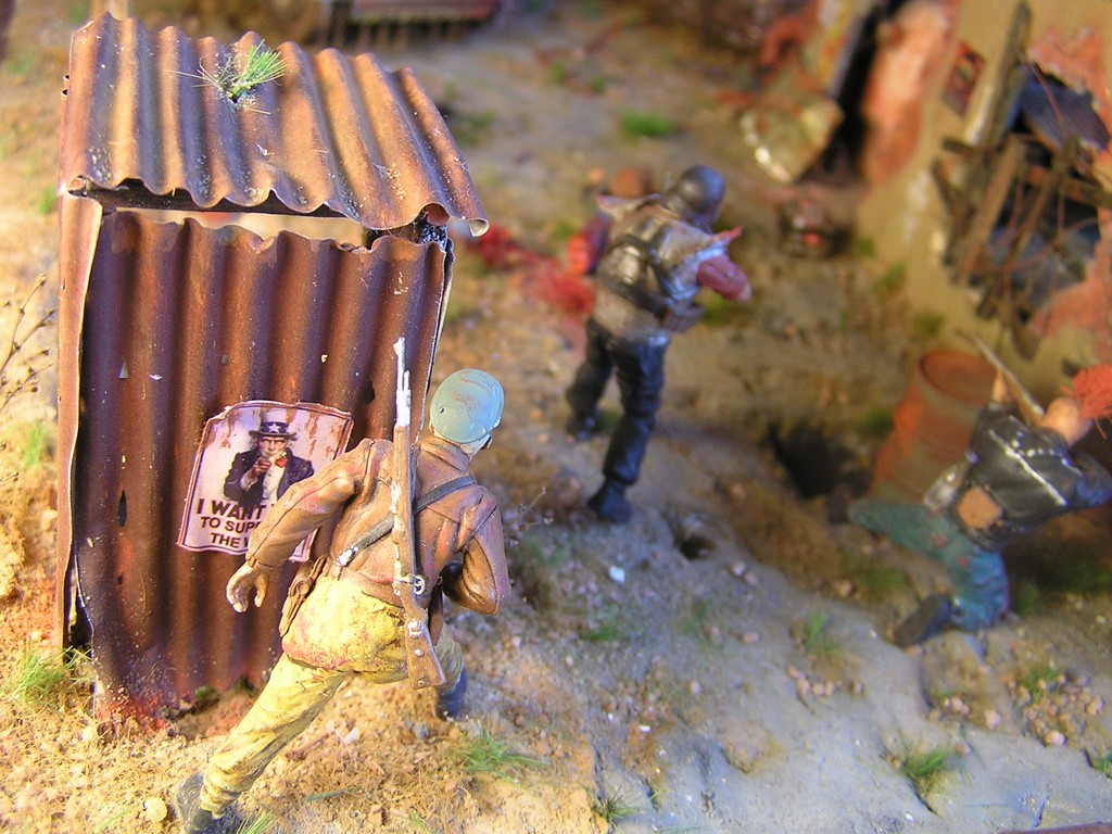 V dioramatu je zachycena scéna, která se odehrává u opuštěného polorozbořeného domu. Bandité přepadli tento úkryt, ve kterém se skrývá jeden obyvatel, který pochází z Vaultu 21. Do konfliktu se ale připlete skupina vojáků z Bratrstva oceli. Jeden člen skupiny (jejich velitel a paladin bratrstva) má oblečenou energo-zbroj a je vyzbrojen rotačním kulometem. Z počátku snadná kořist pro bandity se mění v nečekanou přestřelku a boj o holý život.