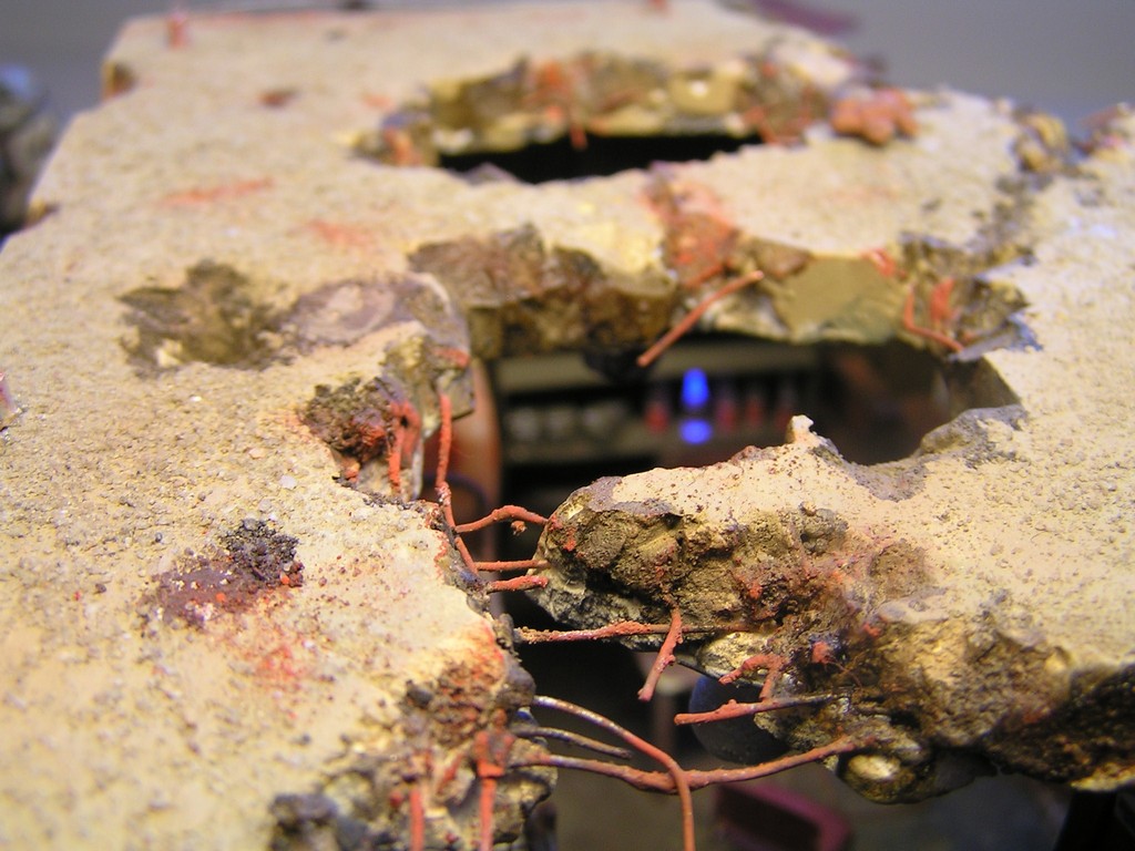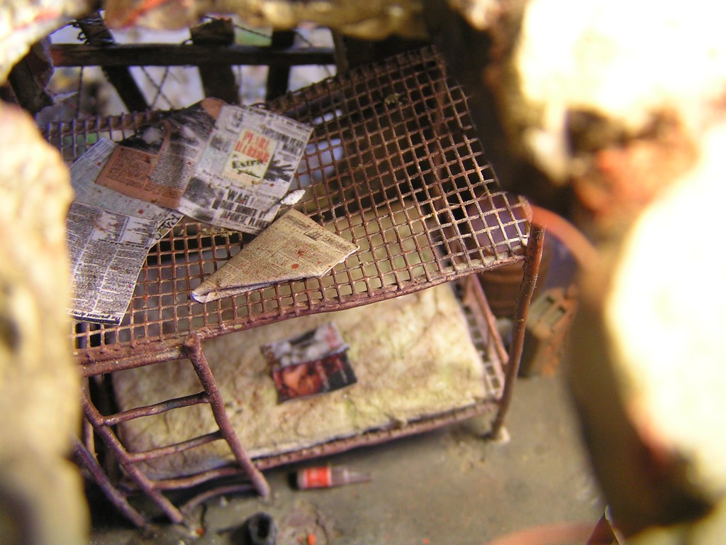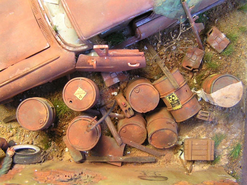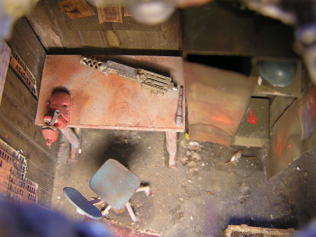 | Stručný popis stavby: | Stavbu dioramy jsem začal vymodelováním paladina Bratrstva oceli. Kvalitní hmota pro tvorbu je Miliput. Vždy jsem dělal figurky jen ze stavebnice, modelování paladina byla moje premiéra. Miliput jsem použil také na tvorbu spousty detailů v interiéru budovy. Hlínu jsem vytvořil ze směsi dřevěných pilin, sádry, lepidla a statické trávy. |