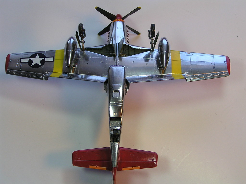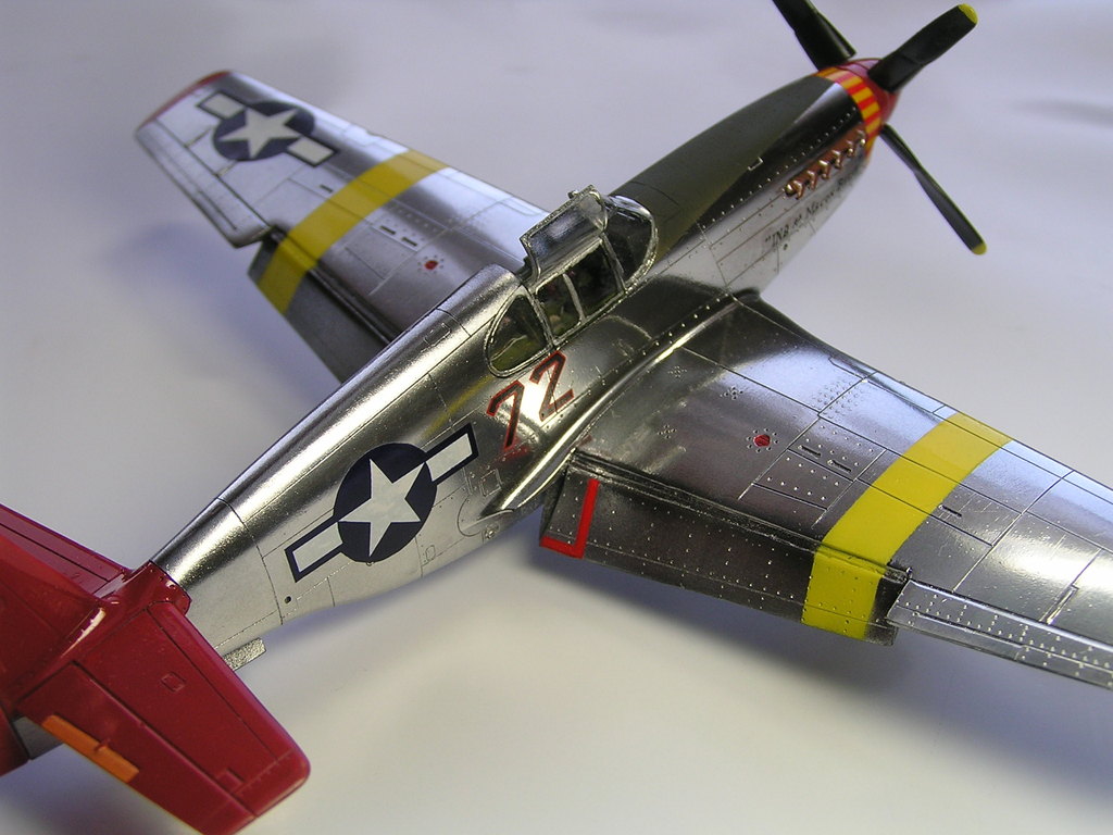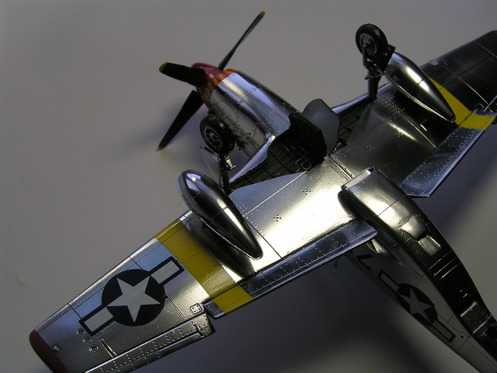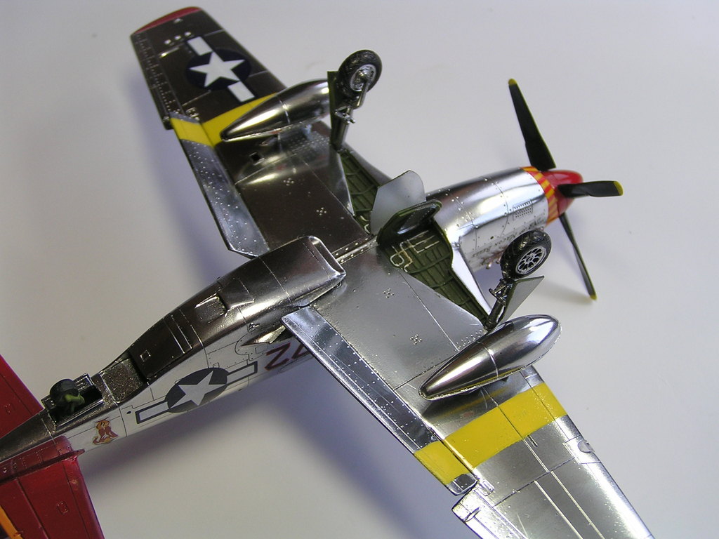 Klapky modelu mají zcela špatně a rovněž hrubé nýtování a povrchová barva P-51D u Alcladu II by měla být 105, tohle je nějaké divoce chromové. Mustang byl z alkladového plechu, továrnou i mechaniky vyleštěn do vysokého lesku, ale ne chromový.