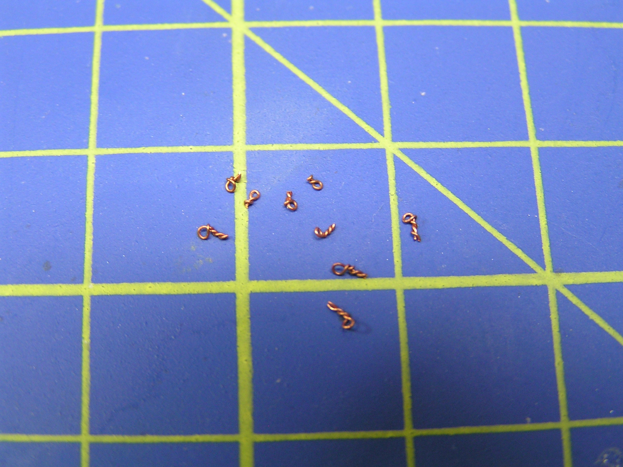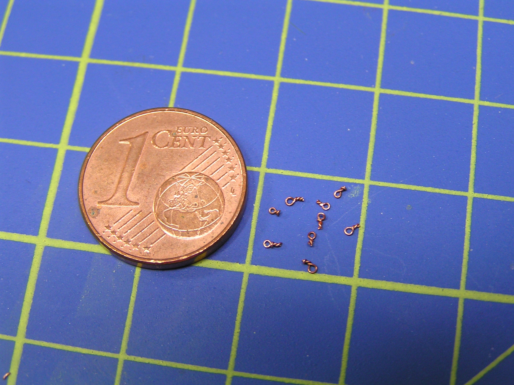 Nejprve musíme vyrobit očka, do kterých se bude provlékat lanko. Vyrobit očka je jednodušší, než se může zdát. Napneme drátek a přes něj obtočíme druhý, který zauzlujeme. Tento postup je velmi rychlý a během pár minut budete mít hotovo. Pak stačí očka svléct, srovnat závit v pinzetě a zkrátit na požadovanou délku.