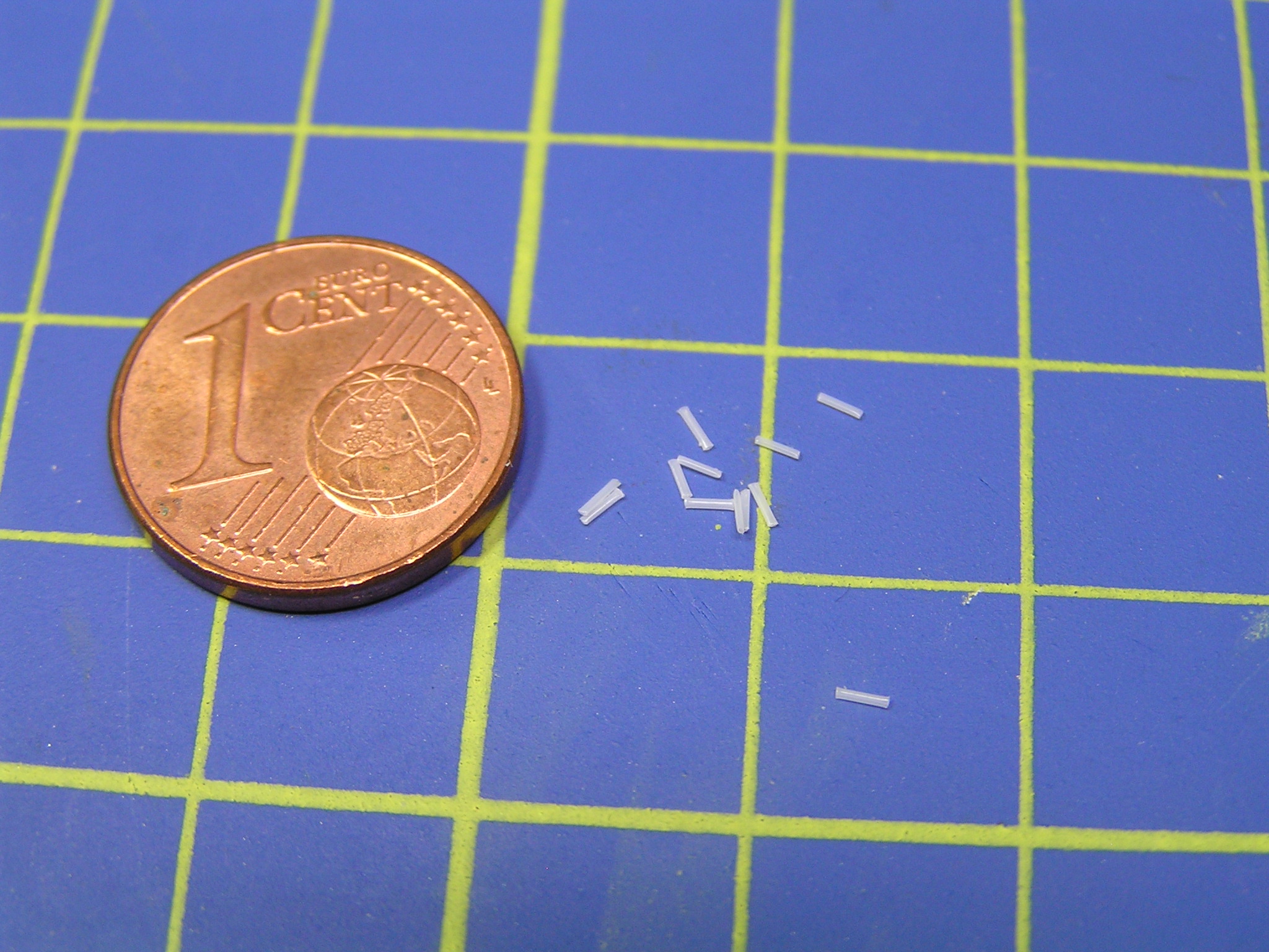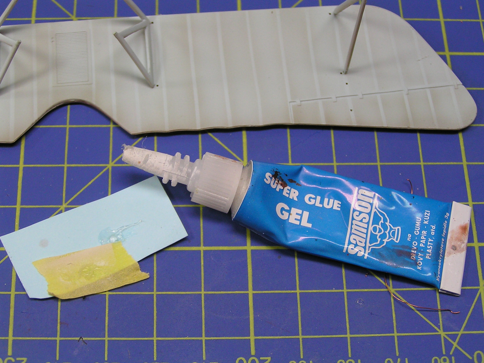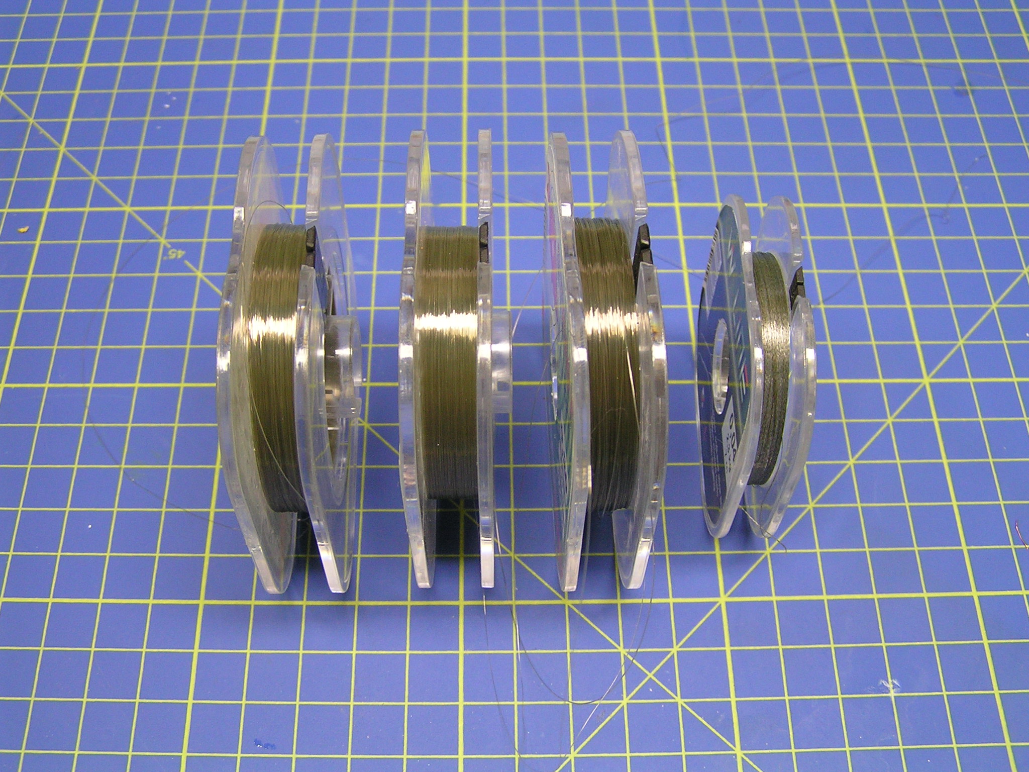 Dříve, když jsem hledal vhodné materiály, tak jsem používal vlasce z vytaženého plastového rámečku, ale ten byl velmi křehký a snadno se přetrhl. Po zjištění, že rybáři používají silonové vlasce o průměru 0,12 mm, jsem hned utíkal do místních rybářských potřeb. Koupil jsem několik špulek silonového vlasce o návinu 100 m. Cena jedné krabičky se pohybuje kolem 30 korun a vystačí vám na hodně modelů. Zkoušel jsem i pletený černý vlasec 0,04 mm, ale ten se třepí.