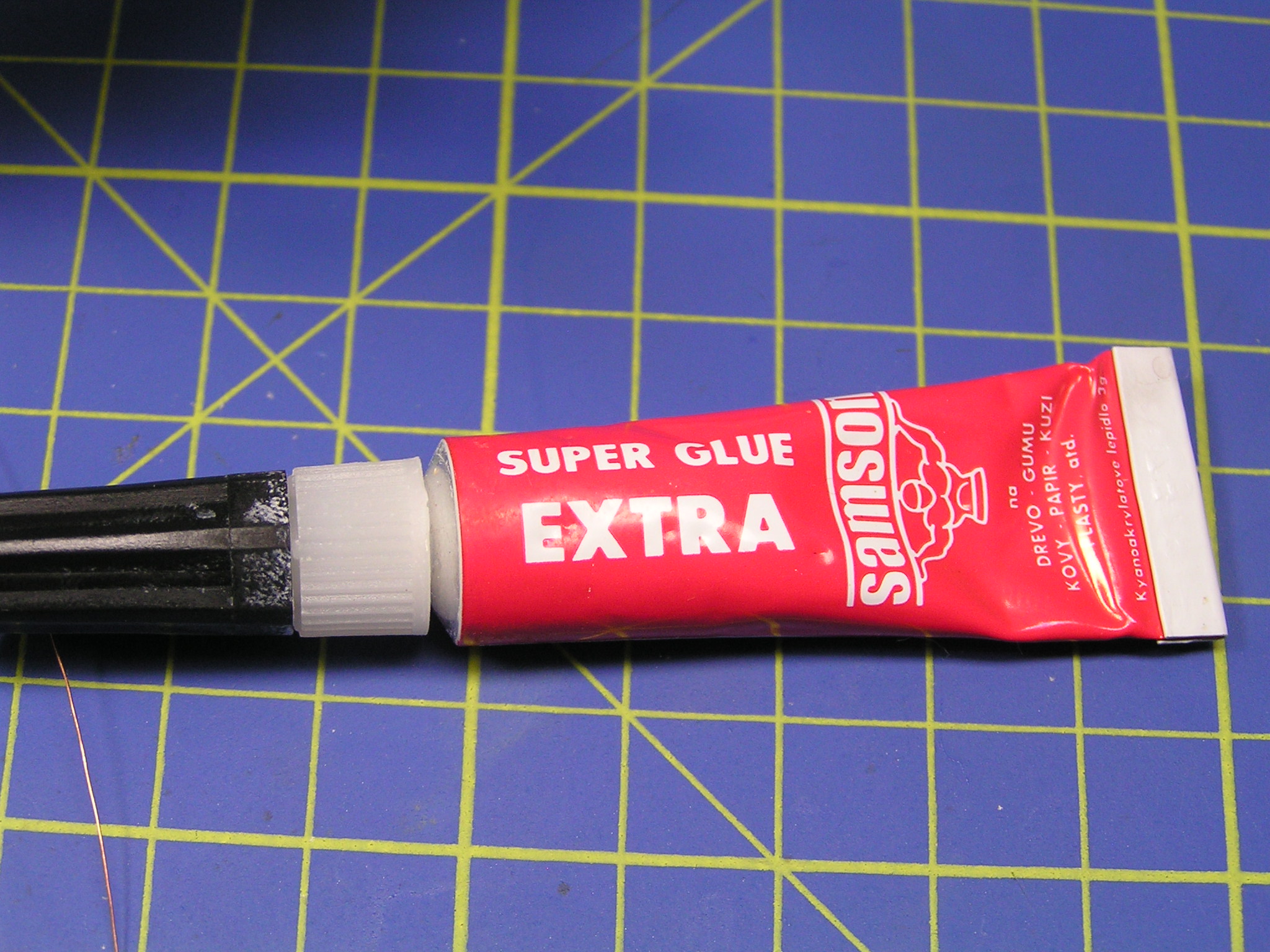 Správně vytažené trubičky stačí nařezat na 3 mm délku a provléknout přes ně vlasec. Vlasec následně provlečeme očkem a zpět do trubičky. Vytvoří se smyčka, kterou stáhneme a zakápneme řídkým sekundovým lepidlem. Lepidlo krásně zateče do trubičky a vytvoří velmi pevný spoj. Přečnívající vlákno zastřihneme manikůrními nůžkami.