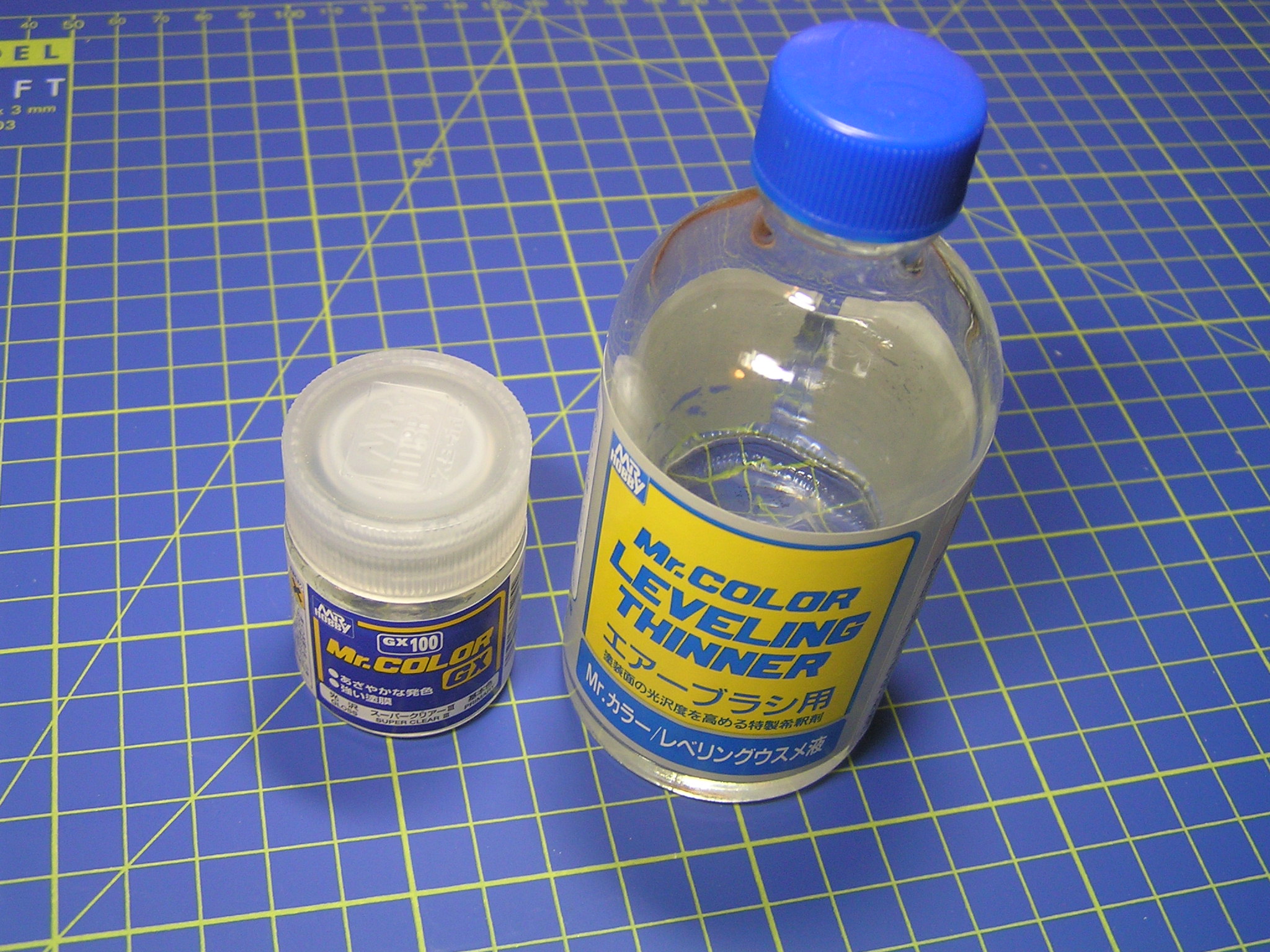 Lak je potřeba naředit. Pokud bychom tak neučinili, tak by byl lak velmi hustý a špatně by se rozprašoval. Na ředění používám originální ředidlo Gunze Leveling Thiner. Protože mám doma airbrush s tryskou 0,2 mm, která není na nástřik laků příliš vhodná (doporučuje se alespoň 0,3 mm a širší), musel jsem lak naředit v poměru 1:4 ve prospěch ředidla a stříkat pod tlakem 3 barů. Airbrush jsem nastavil na co největší rozptyl a souvislými tahy karoserii přelakoval. Nemusíte se opět bát více vrstev laku, protože při následném leštění pak nehrozí sedření podkladové barvy. Auto hned po přelakování vypadá dobře, ale může se stát, že se přilepí při zasychání nějaké smítko prachu, což se stalo i mě. Nevěšte hlavu a po zaschnutí laku jej přebruste do hladka velmi jemným smirkovým papírem a opět přelakujte.
