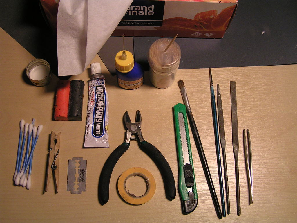 Tohle jsou úplně základní pomůcky. Postupně během stavby vám představím několik dalších nástrojů a chemických přípravků, které využijí hlavně pokročilejší modeláři.