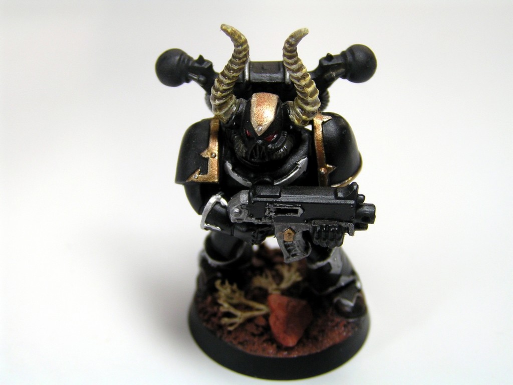 | Výstroj a výzbroj: | power armour, bolt pistole, frag granáty, krak granáty, zbraň na boj zblízka, bolter |